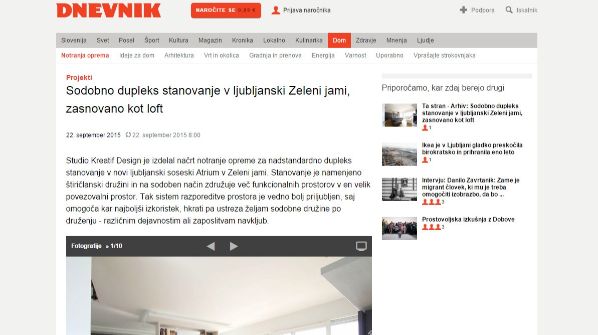 Last month, you could read an article in the media about our latest project “Modern Duplex” about the interior design of a modern apartment for a family in Ljubljana. On the 24ur website or on the Dom in vrt subpage and you can read the full articles on the Dnevnik newspaper’s online portal.